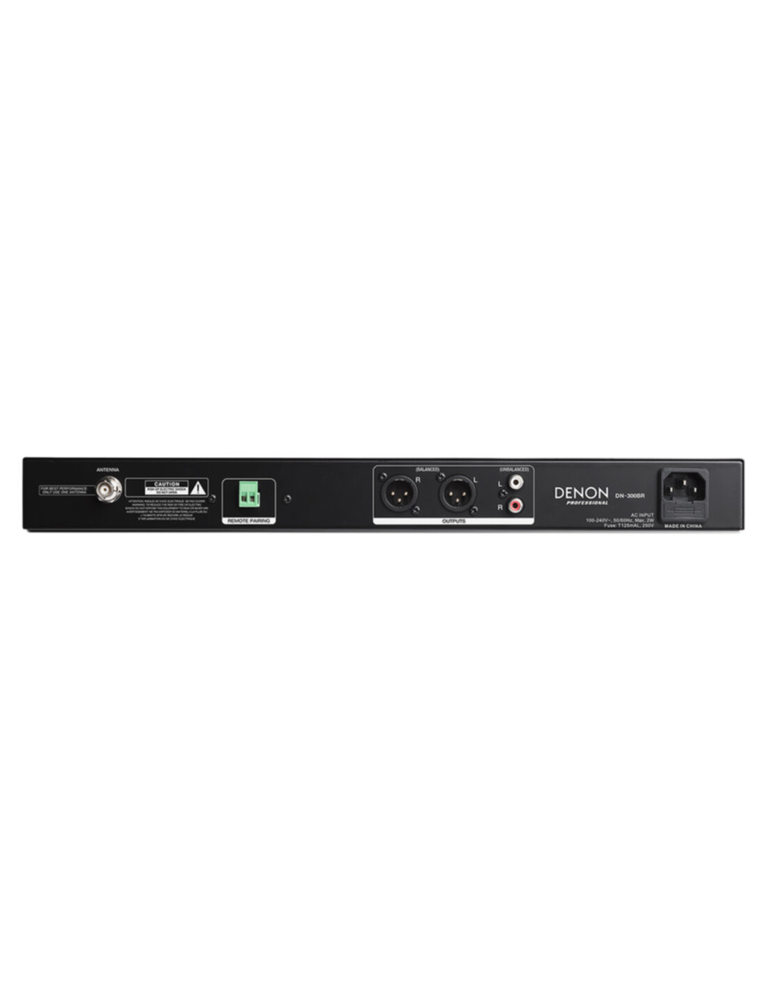 Ricevitore Bluetooth (fino a 8 device) formato 1 unità rack. Consente di aggiungere un ricevitore stereo Bluetooth 4.0 a qualsiasi sistema audio. Pairing fino a 8 device Bluetooth. Uscite bilanciate XLR e sbilanciate RCA. Connessione posteriore per remotare un pulsante di pairing (in caso l’unità risultasse non accessibile). Input BNC frontale e posteriore per il collegamento antenna Bluetooth (inclusa). Ricezione fino a 33 m. Misure: 483 x 271 x 44mm (con rack ear). Peso: 3 Kg.