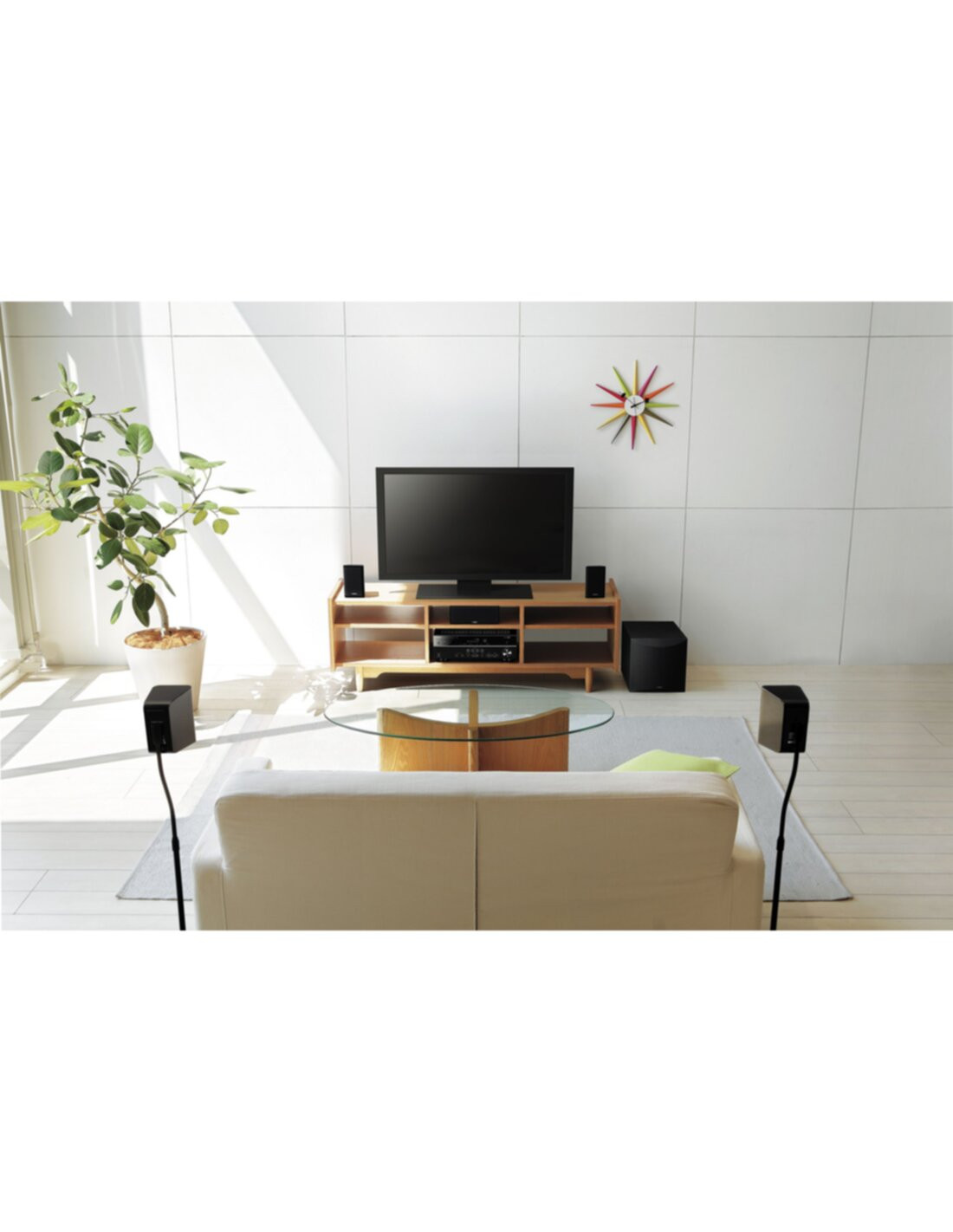 Un compatto sistema di diffusori home theatre 5.1 canali, perfetto per trasformare in potente surround il suono di una normale TV.