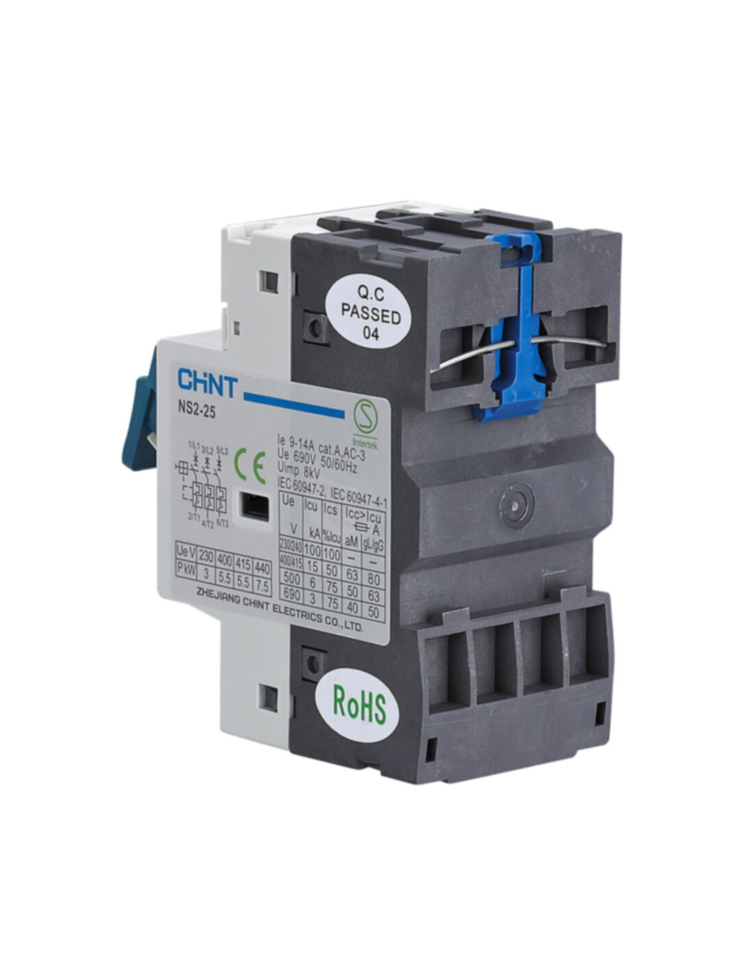 Salvamotori con comando a bilanciere serie NS2-25 e NS2-80B per la protezione di pompe ad immersione o un elettropompa esterna. Serie NS2-25X: 2,5 moduli DIN; potenza in AC3 a 400V fino a 15kW; potenza in AC3 a 230V fino a 7,5kW; campo di regolazione corrente Ir da 0,1÷0,16 A a 24÷32 A, potere di interruzione estremo 100kA. Serie NS2-80B: 3,5 moduli DIN; potenza in AC3 a 400V da 11 a 40kW; potenza in AC3 a 230V da 5,5 a 22kW; campo di regolazione corrente Ir da 16÷25 A a 56÷80 A, potere di interruzione estremo 15kA. Temperatura ambiente: -5°C~+40°C; Altitudine max: ≤ 2000m; Montaggio: inclinazione del piano di montaggio orizzontale o verticale non superiore ±5°.