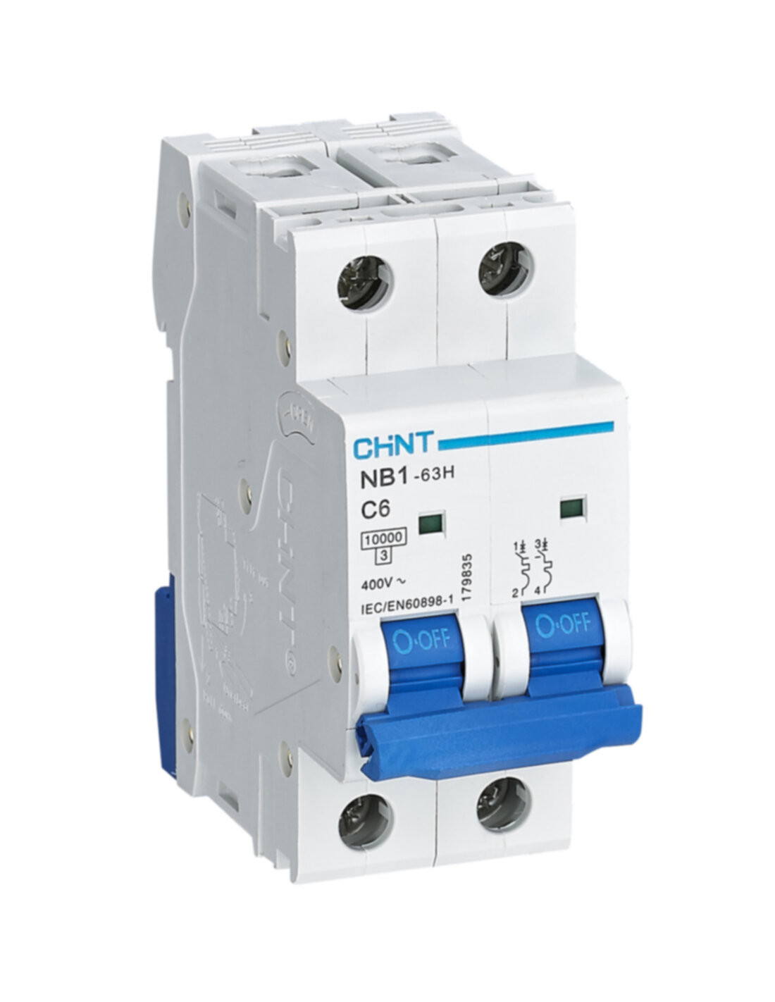 Interruttori magnetotermici serie NB1-63H per la protezione dalle sovracorrenti. Garantiscono una protezione adeguata dai sovraccarichi e dai cortocircuiti e risultano particolarmente idonei all'impiego in ambito civile, terziario e industriale. Disponibili in versione da 1 , 2, 3 e 4 poli, con potere di interruzione nominale (Icn) di 10kA e corrente nominale da 1 a 63 A in curva B, C e D. Tensione nominale 230 V e 400 V. Accessoriabili con contatti ausiliari, contatti di allarme, bobina di sgancio, bobina di minima tensione, moduli differenziali (ad esclusione dell'unipolare).Codice alternativo: NB1-63H/C6-2P-10