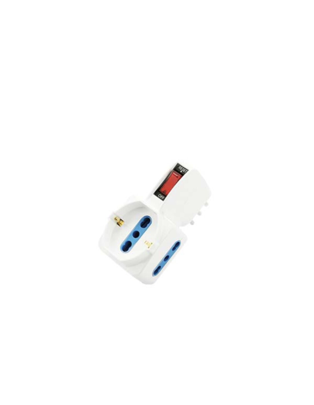 Adattatore triplo salvaspazio con interruttore ON\OFF, che consente di spegnere i dispositivi senza scollegarli dalle prese alle quali sono connessi.2 prese bivalenti 2P+T – 10\16A, 1 presa Schuko 16A e una spina laterale 16A; ottimo per collegare fino a 3 dispositivi elettrici.Grazie alla disposizione delle sue tre prese e alle sue dimensioni ridotte, permette di occupare poco spazio e di caricare in modo efficiente i tuoi dispositivi.Realizzato con materiale ignifugo, resistente agli urti e alle fonti di calore.Per non compromettere le funzionalità dell’adattatore triplo con interruttore, ed evitare cortocircuiti o malfunzionamenti, consigliamo di tenerlo lontano da spruzzi d’acqua e polvere.Nota: alveoli protetti.Marchiato CE.