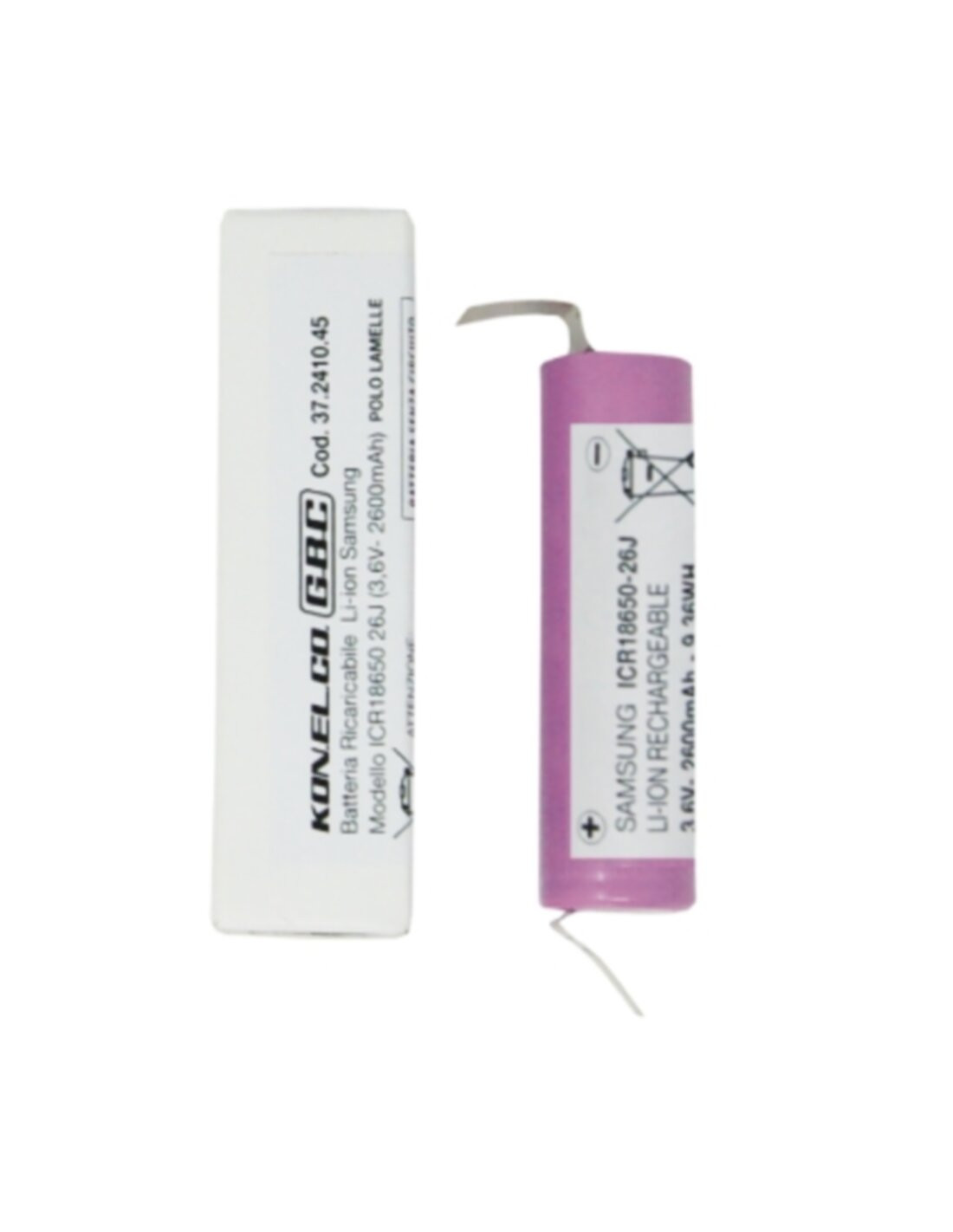 Batteria litio 3,6V 2600mAh con lamelle Vcar: 4,2V - Acar: 1300mA - Asca: 5200mA