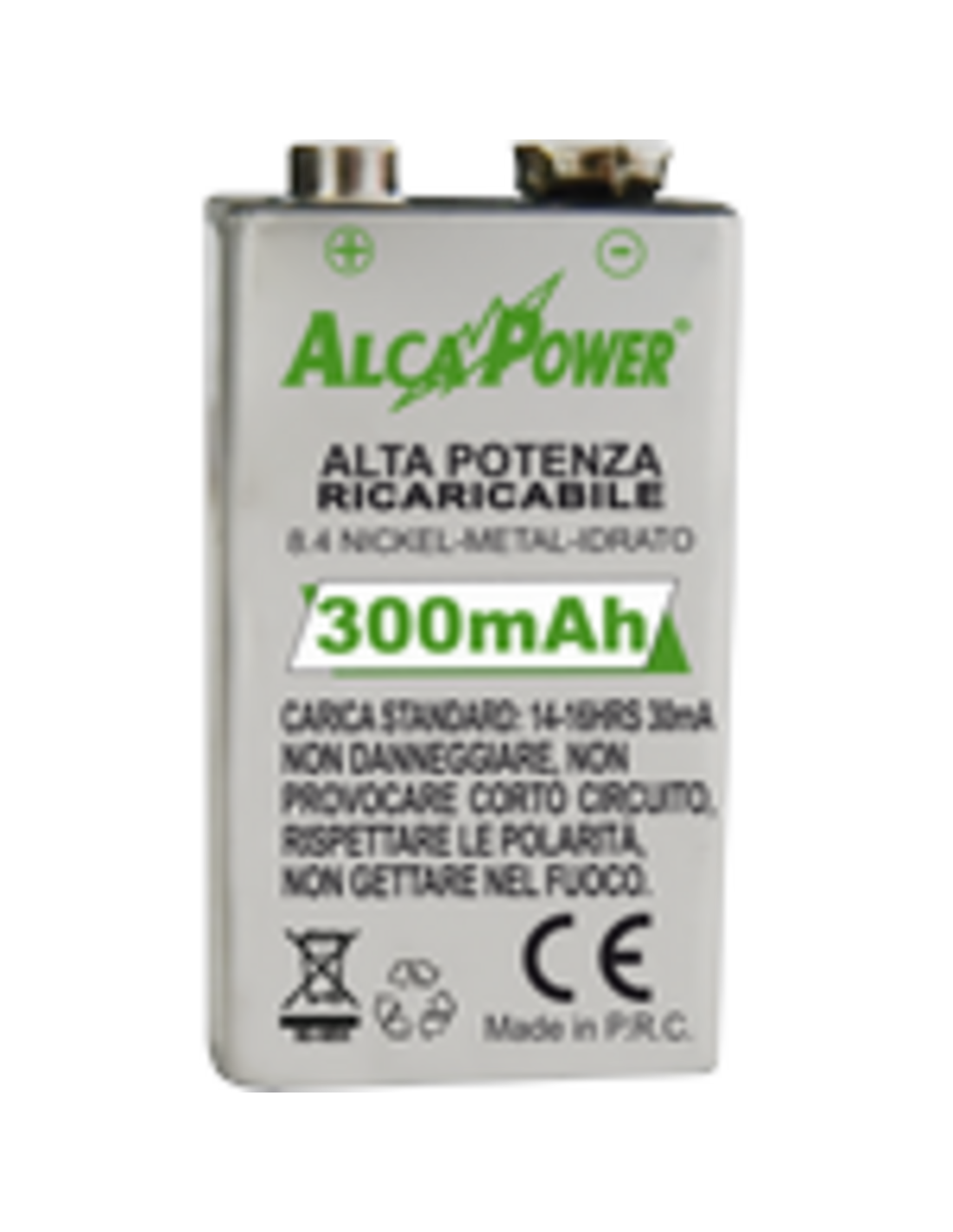 Capacità (mAh): 300 | Codice alternativo: AP300N9V | Formato batteria: 9V | Tensione (V): 9